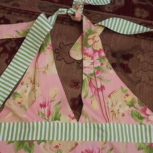 Halter apron with pockets pink & green cabbage rose PLUS FREE cookbook