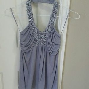 medium grey colored halter blouse with with beautiful detailing along neckline