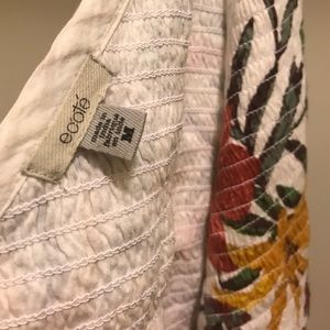 Haltered, floral crop top. It ties in the back and has an OPEN BACK! It's so cute and hard to get rid of, but I'm trying to clean out my closet for new things.