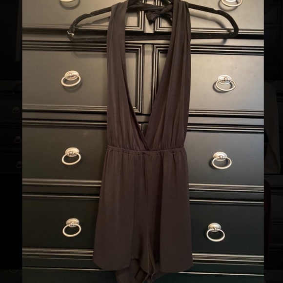 Black halter, backless romper