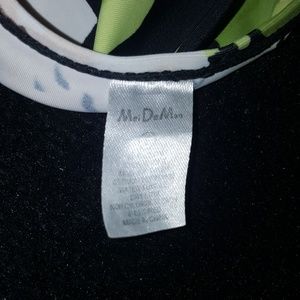 83%Nylon, 17%Spandex, Dark Floral Pattern, red, green and tan undertones. Great for hot days.