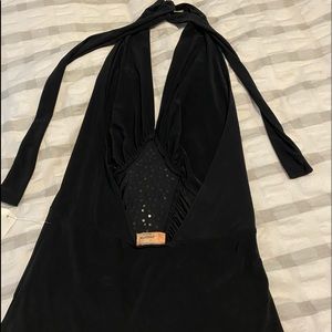 Bling, stretchy, perfect for summer night out! Ties around the neck and best full coverage for top heavy.
