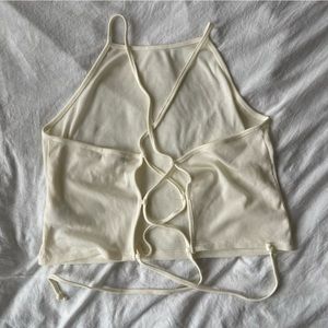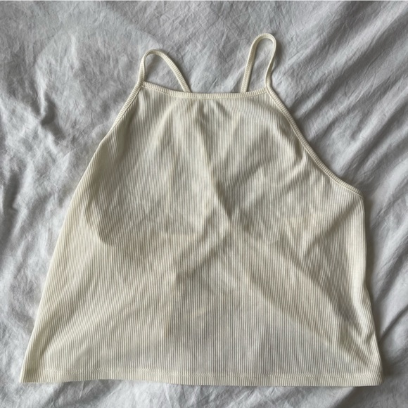 Never before used ribbed halter top with a crisscross back.