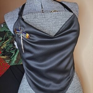 Halter top handcrafted,with dragonfly brooch included. Medium weight satin