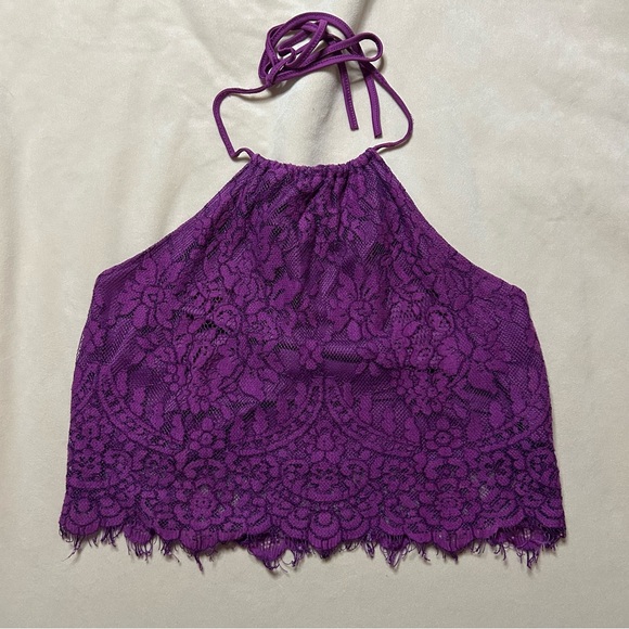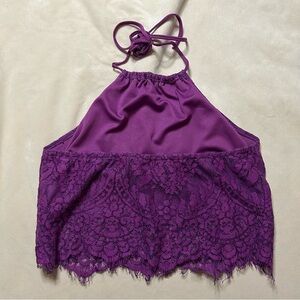 Adorable purple lace halter top. LA hearts from pacsun. Size small, measurements as pictured.