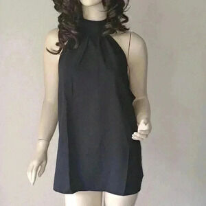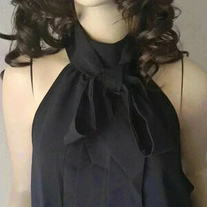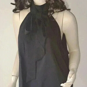 beautiful black solid color halter for neck tank top, sleeveless breathable relaxed fit bow-at necklace, sash enclosed wear as you please! 100% polyester