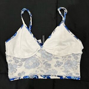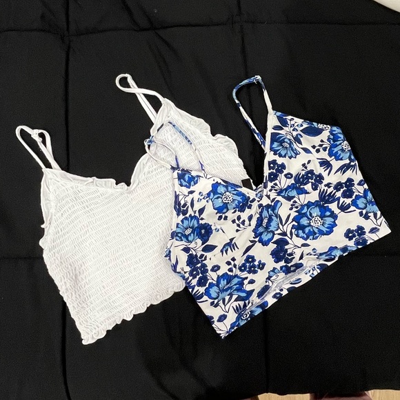 Super cute fitted crop top bundle. Both have adjustable straps and both are tightly fitted. The blue is absolute beautiful and perfect for spring/summer vibes. The white is ideal for cover ups or dress up for a cute girls night out fit.