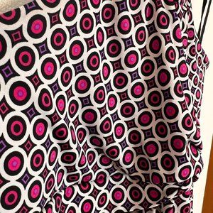 Pink circles (black, white circles) halter top with tie closure back of neck. Tie closure have metal circles in the front. Soft material.