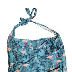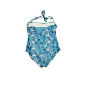 Halter Neck Flamingo Retro One Piece Bathing Suit Size XL Teal Blue