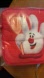 This red pot holder features the hamburger helper mascot. New in packaging. See photos for measurements and care tag. There are some white spots that may just be lint. I did not want to open the packaging. See photos for those.