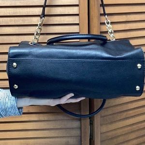 14x12x4 pebble leather with gold hardware. Black lining magnet clasp.