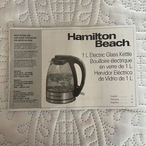 NEW NEVER BEEN USED. Perfect for small spaces. Turns blue when turned on. Has automatic shut off for safety and with boil-dry protection. Includes original box with directions.