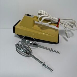 Step back in time with this charming vintage Hamilton Beach hand mixer! A delightful addition to any retro kitchen, this mixer promises to bring a touch of nostalgia to your baking adventures. Imagine the satisfying hum as you select from four speeds – from a gentle stir to a vigorous whip – all controlled by the easy-to-use dial. The iconic yellow and black design adds a pop of color and personality to your countertop, while the sturdy construction ensures reliable performance for years to come. Perfect for whipping up a batch of fluffy pancakes on a lazy Sunday morning or mixing ingredients for your grandmother's famous cookie recipe, this hand mixer is ready to become a cherished part of your culinary traditions.