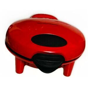 The Hamilton Beach Red Electric Quesadilla Maker Type ST25 Model 25409 is a convenient small kitchen appliance designed for making electric quesadillas. With a round shape and a non-stick surface, it is easy to clean and perfect for creating delicious grilled cheese sandwiches or tortilla pockets. The 900W power source ensures quick and efficient cooking, while the 1-year manufacturer warranty provides peace of mind. Made of durable metal, this electric quesadilla maker is a reliable addition to any kitchen, adding a fun and tasty touch to your cooking experience.
