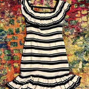 Hamilton Black and White Off-the-Shoulder Striped Dress w/ Ruffles-Size 2