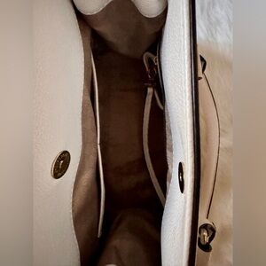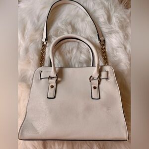 Hamilton Elegant Cream Medium Leather Satchel with Gold Accents hard wear