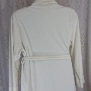Hamilton Gold, Ivory Velour, Long Robe, Kimono Wrap, 2 Pockets, Embroidery, Size * See Measurements, 2X-3X Plus, Winter, Hospital Nursing Home, excellent condition, no issues or flaws to state