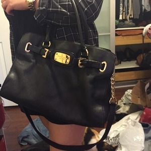 Black Hamilton, hardly used Michael Kors bag. Gold chain on the straps. Hardly used & I have the authenticity card (I wrote a reminder on it lol). NO TRADES, YOU WILL BE IGNORED.