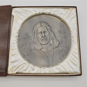 Style: 9" Pewter plate with fabric lined decorative faux leather box