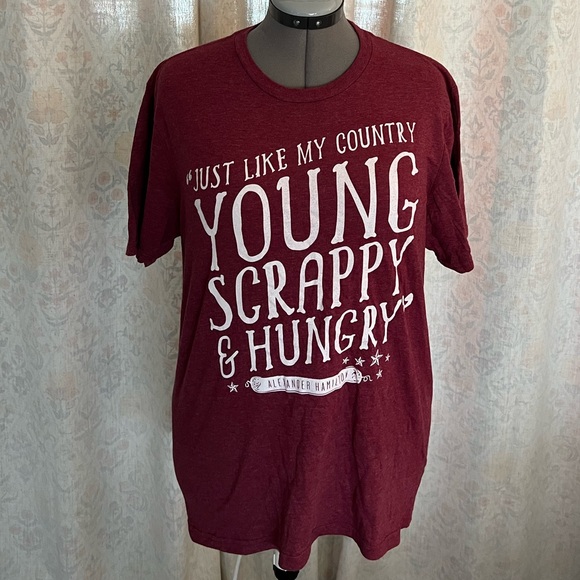 Maroon shirt bought from Hamilton the musical. Cotton. Faded tag but size large.