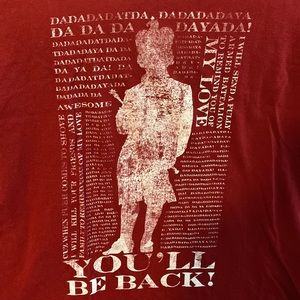 Awesome keepsake from the London run of Hamilton - red short-sleeve tee featuring King George and the lyrics of “You’ll Be Back.” Great condition, and very soft and cozy. Would look cute tucked into shorts!