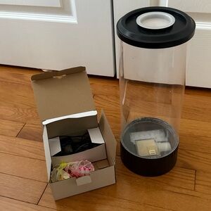 This jellyfish aquarium is in good condition with no flaws! Gently used. Pink and yellow jellyfish that float in the tank.