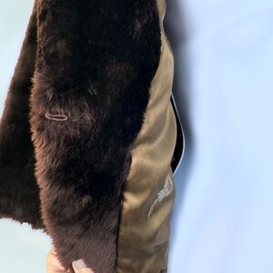 Very good preowned vintage condition. No stains. Clean and super soft. The inside satin lining has a flaw/rip where it was snagged (see photos). All else is excellent condition.