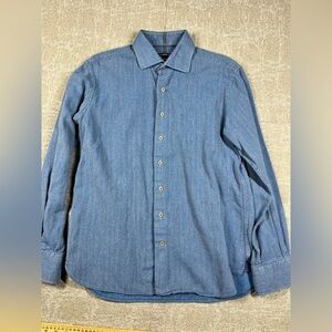 Hammer Made 100% Cotton Italian Fabric Blue Button Down Long Sleeve Size 41/16