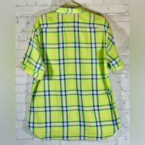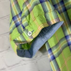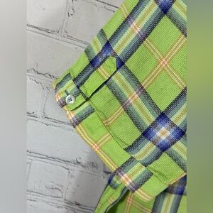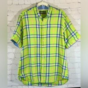 Hammer Made Green Check Cotton Button Flip Short Sleeve Casual Shirt, Large