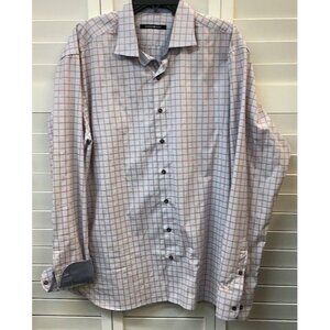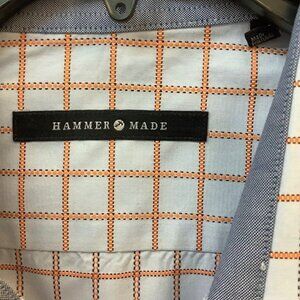 Hammer Made Mens Button-Up Dress Shirt 44/175 Checkered Pattern Orange & White L