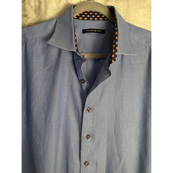 Hammer Made Men’s Dress Shirt 44 Blue Micro-Check Pattern Modern Fit