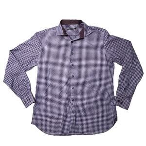 Hammer Made Men’s L Shirt 42 16.5 Long Sleeve Button Up Down Red Blue Plaid