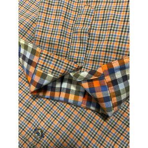 Hammer Made Mens Orange & Blue Plaid Button-Up Shirt Size 16/41 Tailored Fit