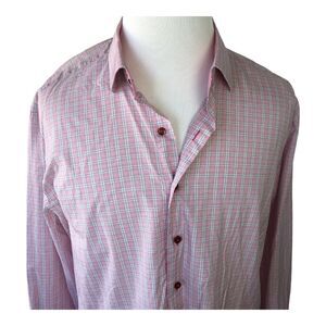 Hammer Made Mens Pink Plaid 46/18.5 Long Sleeve Shirt Flip Cuff Button Up XXL