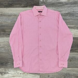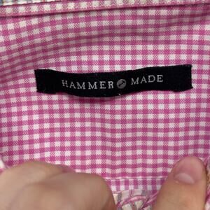 Hammer Made Pink White Gingham Plaid Mens M Button Down Long Sleeve Dress Shirt