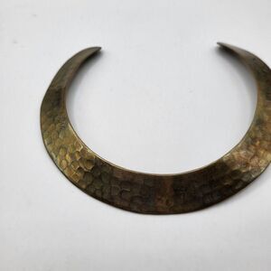 Hammered Brass Choker Collar Necklace 4in dia | Materials: brass | Length: 4in dia | Clasp: slide on | Signed? no | Excellent vintage condition