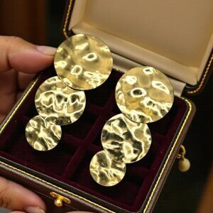 Trendy keywords: statement earrings | hammered disc earrings | 18K gold plated jewelry | stainless steel hypoallergenic earrings | trendy bold earrings | hammered gold earrings | oversized statement earrings | geometric gold earrings | elegant evening earrings | cocktail party jewelry | night out accessories | boho chic statement earrings | modern gold earrings | minimal hammered texture earrings | large disc earrings | womenβs fashion jewelry | glamorous jewelry gift | festival fashion jewelry | everyday chic earrings | stylish hammered earrings | long dangle gold earrings | lightweight statement jewelry | designer look