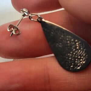 These elegant teardrop-shaped earrings feature a textured hammered copper finish that catches the light with a rustic yet modern appeal. The smooth, polished edges contrast beautifully with the unique hammered surface, giving them a sophisticated yet earthy vibe. Designed with a secure silver stud backing, these earrings are both lightweight and comfortable for all-day wear. Their versatile style makes them perfect for adding a subtle touch of boho-chic flair to casual outfits or enhancing more formal looks with their distinctive charm. Whether you're looking to elevate your personal style or seeking the perfect gift, these copper teardrop earrings are an essential addition to any jewelry collection. The combination of the rich copper finish and sleek silver accents creates a timeless piece that transitions seamlessly from day to night. These earrings add a bold yet refined element to your jewelry collection, making them a must-have accessory for fashion lovers.