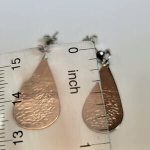 Hammered Copper Teardrop Earrings with Silver Stud Backing, Rustic Charm