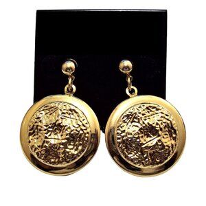 Hammered Discs Hoop Pierced Post Earrings Gold Tone