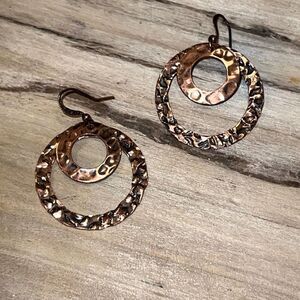 Hammered Double Rings Earrings Womens Copper Colored 11/2” drop Bohemian Classic
