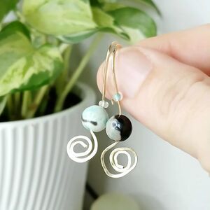 Hammered brass ear wire accented with round gemstone beads