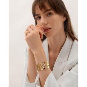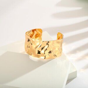 Features: Wide hammered gold cuff with a rustic, vintage vibe. Crafted from polished brass, it has a smooth, glossy finish that feels as good as it looks. Flexible and adjustable to comfortably fit any wrist, making it super practical for everyday wear or special occasions.