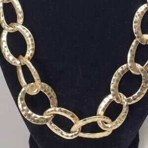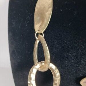Make a bold fashion statement with this hammered gold jewelry set featuring a chunky chain-link necklace and matching textured disc earrings. Designed for confident, modern women, this set adds a touch of glamour to any outfit—perfect for parties, evenings out, or special occasions. Lightweight yet eye-catching, it’s the ultimate accessory for turning heads. New Without Tag.