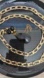 Gold tone, polished hammered elongated oval link, gold tone bead and black facetted acrylic bead drop. This is a pre-loved piece in very nice pre-loved condition, please see photos for measurements and details.
