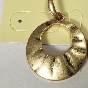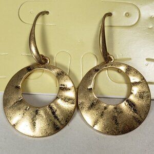 An awesome design of a pair of Hammered Gold tone Fishhook Hoop Drop Earrings. New without tag
