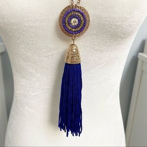 Gorgeous long necklace on a gold tone chain. Would look great over a maxi dress on a vacation.