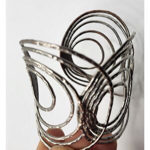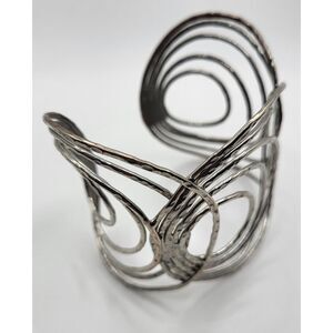 Hammered Modernist Silver tone Interlocking Bracelet Bangle