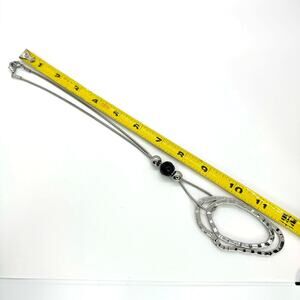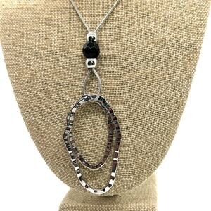 Hammered Silver Rings Pendant Necklace Black Bead Snake Chain Statement Piece
