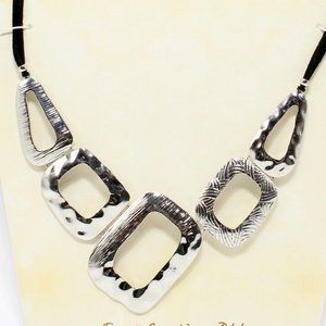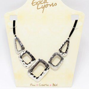 Hammered Silver Tone Necklace Bib Erica Lyons Geometric Orig $32 NWT 18"- 21"